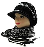 Matching Hand Knit Warm Wool Beanie Cap And Scarf Set.100% Soft And Warm Acrylic Fabric.Perfect For Winter And Cold Weather.4ft x 6inch Scarf dimensions.Beanie has a loose fitting design..../ Black White Striped Crochet Beanie Cap Scarf Muffler / Scarf Scarf