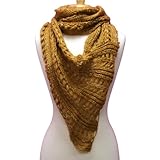 .../ Camel Metallic Open Weave Knit Triangle Infinity Ring Scarf / Scarf Scarf