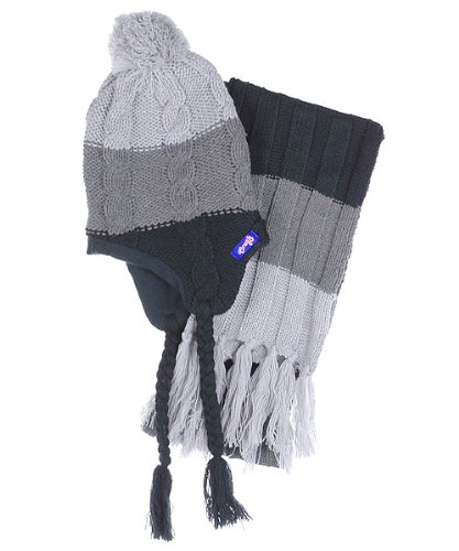 This unisex hat and scarf set looks good enough to eat! Keep your little girl or guy snug in the ribbed scarf and matching cable knit hat. Hat is lined with polarfleece for the ultimate in coziness. 100% Acrylic Hand Wash Cold Made in China.../ Crush "Chocolate Stripes" Hat & Scarf Set (One Size) - gray/black, one size / Scarf Scarf